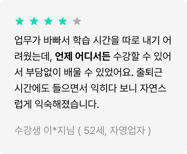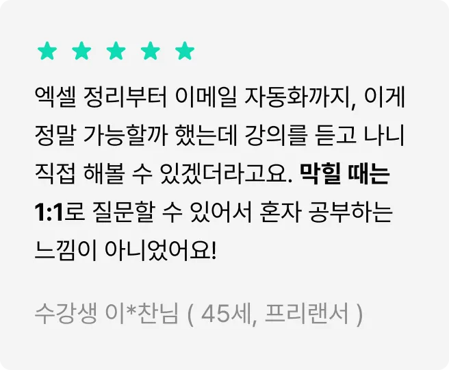 4050 직장인, 프리랜서 등 효율화, 수익화를 꿈꾸는 많은 분들이 배우고 있습니다.