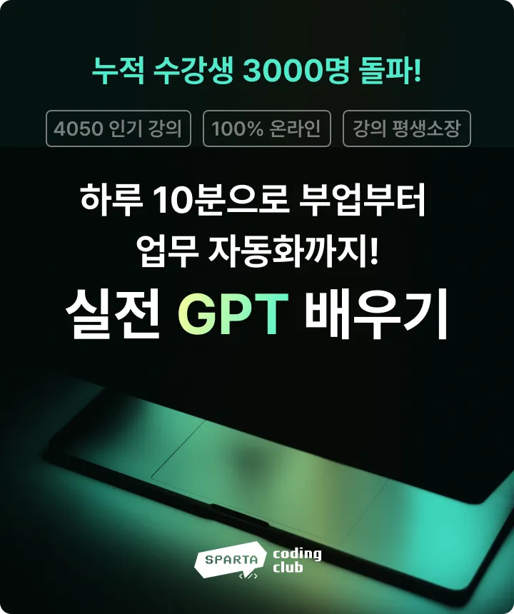 주소: 서울특별시 강남구 테헤란로44길 8 12층 | (아이콘역삼빌딩) | 이메일: contact@teamsparta.co | 전화: 1522-8016 |